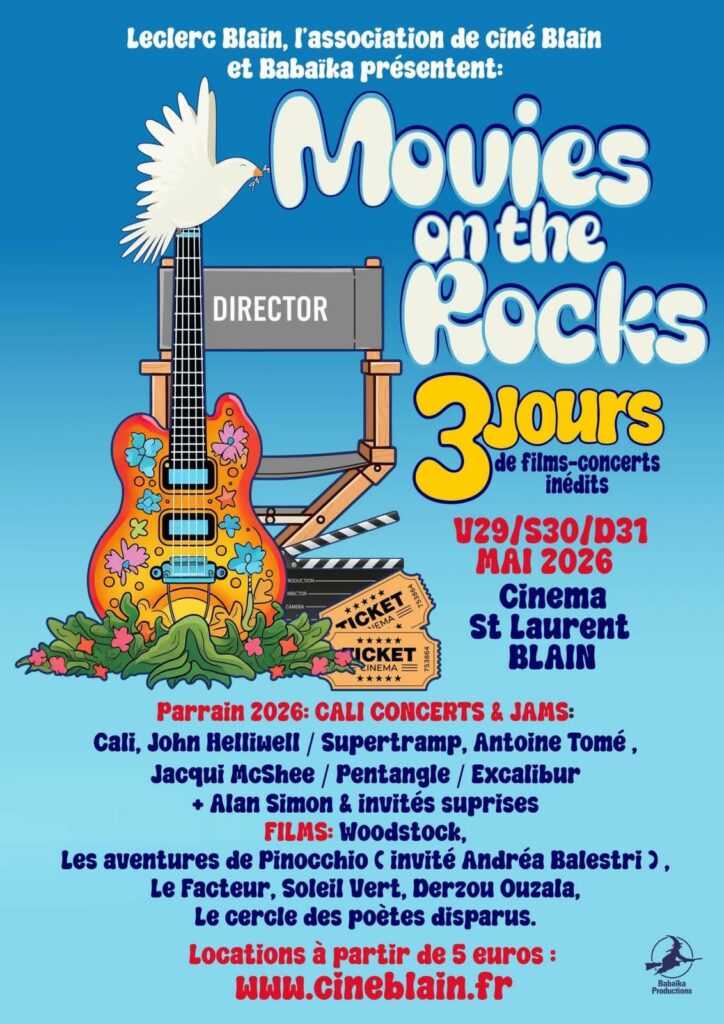 Ce festival à taille humaine (seulement 165 places) vous propose trois jours de bonheur soit six films et six concerts. » Movies on the rocks » privilégie la convivialité, loin très loin du strass et des paillettes. Pas de blahblah ni de débats interminables mais plus simplement un chouette film et un concert à suivre reprenant quelques titres de la BO mais pas que.. Le festival se clôturera en force avec le merveilleux songwriter Antoine Tomé pour une fiesta finale with guests.